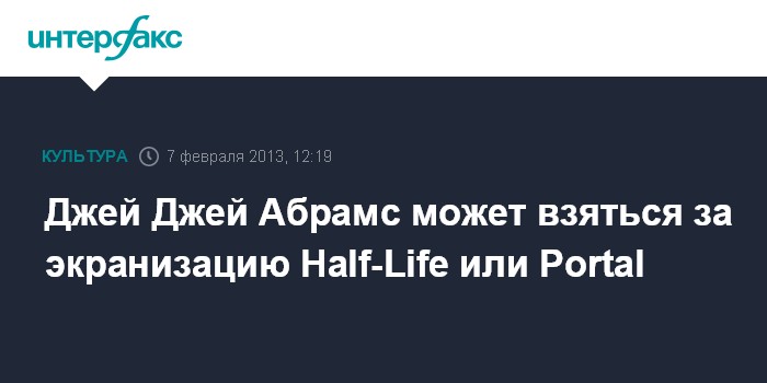 Москва. 7 февраля. INTERFAX.RU - Известный американский режиссер и продюсер Джей Джей Абрамс может заняться съемками фильма по мотивам популярных видеоигр Half-Life и Portal. Об этом сообщает в четверг интернет-издание The Verge.