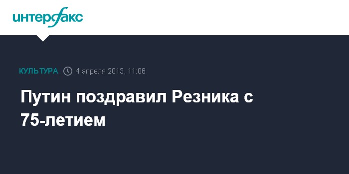 Москва. 4 апреля. INTERFAX.RU - Владимир Путин поздравил поэта-песенника, народного артиста России Илью Резника с 75-летием.