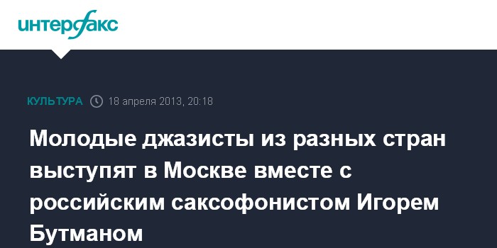 Молодые джазисты из разных стран выступят в Москве вместе с российским саксофонистом Игорем Бутманом