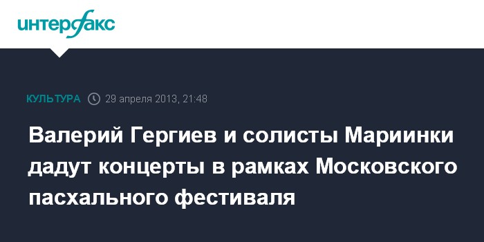 Москва. 29 апреля. INTERFAX.RU - Двенадцатый Московский пасхальный фестиваль под началом художественного руководителя Мариинского театра Валерия Гергиева пройдет с 5 по 16 мая в Москве, сообщила пресс-секретарь фестиваля Майя Михайлова.