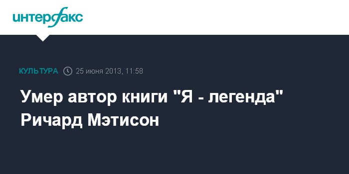 Умер автор книги "Я - легенда" Ричард Мэтисон