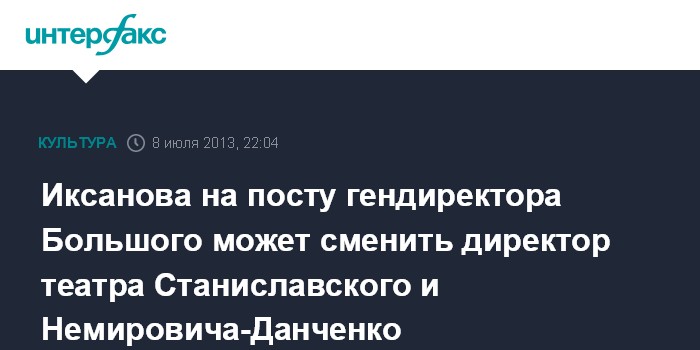 Иксанова на посту гендиректора Большого может сменить директор театра Станиславского и Немировича-Данченко
