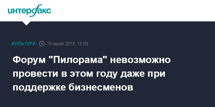 Пермь. 10 июля. INTERFAX.RU - Гражданский форум "Пилорама", который был отменен в Пермском крае из-за недостаточного финансирования, не будет проведен, несмотря на предложенную местными бизнесменами помощь, сообщает пресс-служба мероприятия.