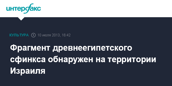 Иерусалим. 10 июля. INTERFAX.RU - Израильские археологи в ходе раскопок в районе холма Тель-Хацор на севере страны нашли фрагмент статуи гранитного египетского сфинкса, сообщают израильские СМИ в среду.