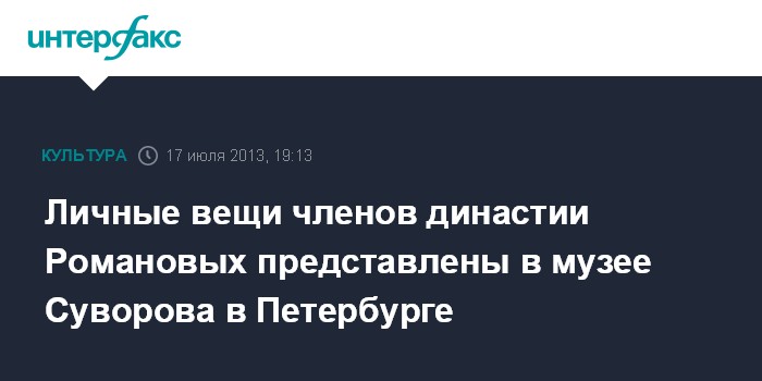 Санкт-Петербург. 17 июля. INTERFAX.RU - Выставка "Суворовского музея державный основатель", посвященная 400-летию дома Романовых и 95-летию со дня гибели царской семьи, открылась в государственном мемориальном музее А.В. Суворова в среду.