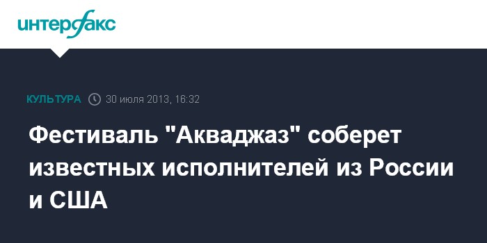 Москва. 30 июля. INTERFAX.RU - Четвертый международный фестиваль "Акваджаз. Sochi Jazz Festival" с участием российских и американских исполнителей из России и США пройдет с 1 по 4 августа нынешнего года в рамках Культурной Олимпиады "Сочи 2014".