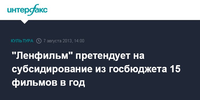 "Ленфильм" претендует на субсидирование из госбюджета 15 фильмов в год