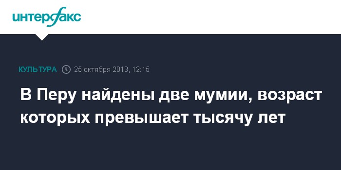Лондон. 25 октября. INTERFAX.RU - Археологи обнаружили две мумии в пригороде перуанской столицы Лимы. Как сообщила BBC, их возраст превышает тысячу лет.