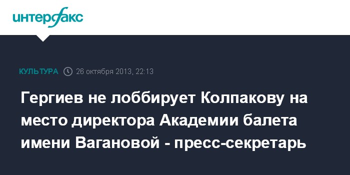 Гергиев не лоббирует Колпакову на место директора Академии балета имени Вагановой - пресс-секретарь