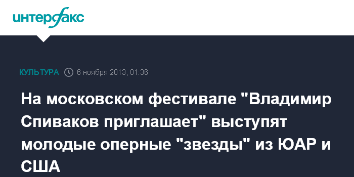 На московском фестивале "Владимир Спиваков приглашает" выступят молодые оперные "звезды" из ЮАР и США