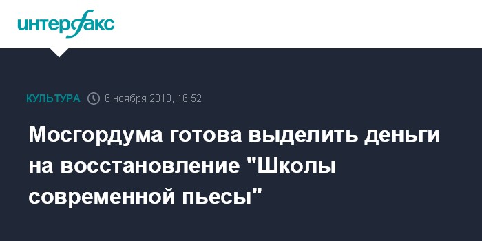 Москва. 6 ноября. INTERFAX.RU - При принятии проекта бюджета столицы на 2014 год в окончательном чтении в нем планируется предусмотреть дополнительные деньги на сохранение здания театра "Школа современной пьесы", пострадавшего от пожара.