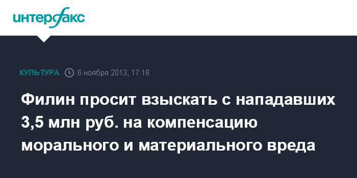 Филин просит взыскать с нападавших 3,5 млн руб. на компенсацию морального и материального вреда
