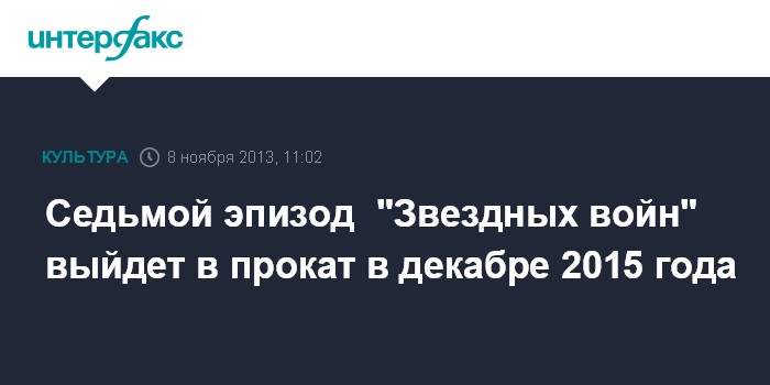 Вашингтон. 8 ноября. INTERFAX.RU - Премьера седьмого эпизода саги "Звездные войны" состоится 18 декабря 2015 года.