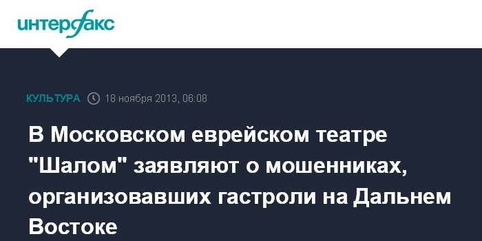 В Московском еврейском театре "Шалом" заявляют о мошенниках, организовавших гастроли на Дальнем Востоке