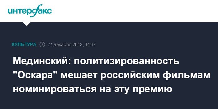 Мединский: политизированность "Оскара" мешает российским фильмам номинироваться на эту премию