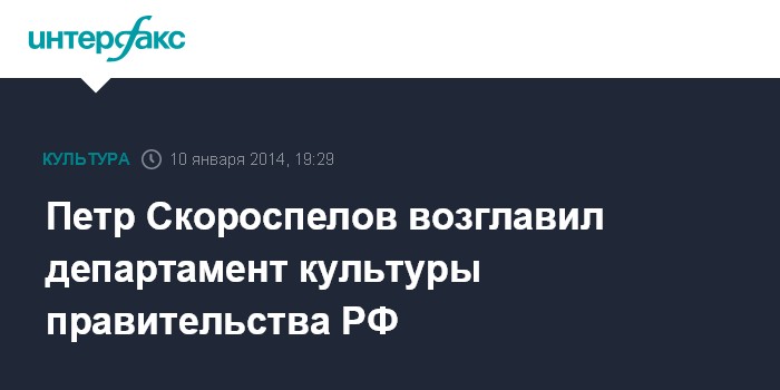 "Назначить Скороспелова Петра Петровича директором Департамента культуры Правительства Российской Федерации", - говорится в распоряжении, опубликованном на сайте правительства РФ в пятницу.