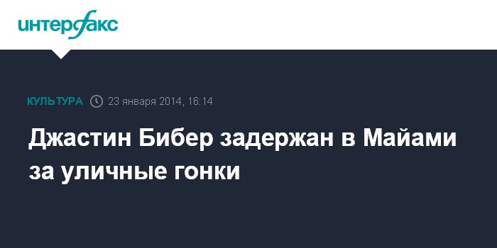 Москва. 23 января. INTERFAX.RU - Москва. 23 января. INTERFAX.RU - Популярный певец Джастин Бибер задержан утром в четверг в Майами за уличные гонки и вождение под воздействием наркотических веществ, сообщают американские СМИ.
