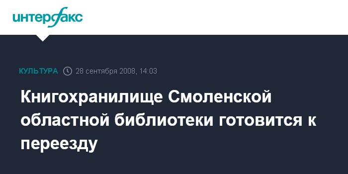 "Для размещения книг обладминистрация предоставила помещение бывшего фармацевтического склада. Его ремонт планируется закончить в октябре. Большую помощь в организации переезда нам оказывают студенты Смоленского государственного института искусств и военнослужащие", - рассказала Г.Артамонова.