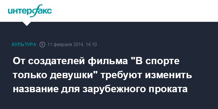 Москва. 11 февраля. INTERFAX.RU - Кинокомпания Metro Goldwyn Mayer требует от создателей российского фильма "В спорте только девушки" изменить название фильма для зарубежного проката, сообщили во вторник "Интерфаксу" в компании - производителе фильма "Среда-Фетисов Филмс".