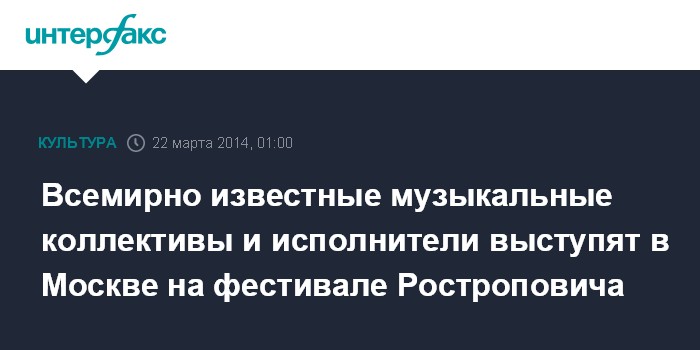Москва. 22 марта. INTERFAX.RU - V Международный фестиваль имени выдающегося российского музыканта Мстислава Ростроповича пойдет с 27 марта по 5 апреля в Москве.