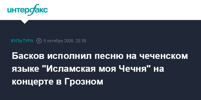"Героем концерта стал Николай Басков, который на чеченском языке спел известную и популярную песню "Исламская моя Чечня". Зал, включая полпреда президента России в Южном федеральном округе Владимира Устинова и президента Чечни Рамзана Кадырова, стоя слушал всю песню", - передал с места события корреспондент "Интерфакса".