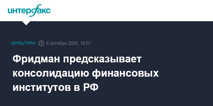 Фридман предсказывает консолидацию финансовых институтов в РФ