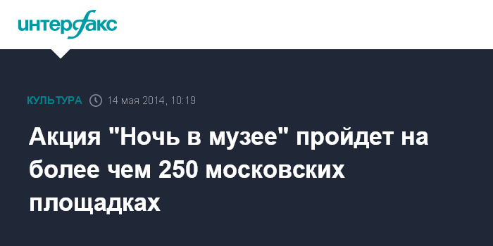 Москва. 14 мая. INTERFAX.RU - Восьмая для Москвы акция "Ночь в музее" пройдет 17 мая.