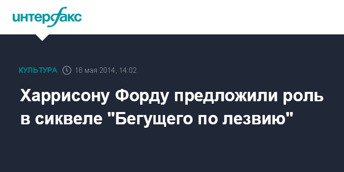 Москва. 16 мая. INTERFAX.RU - Американскому актеру Харрисону Форду предложили роль Рика Декарта в сиквеле культового научно-фантастического фильма "Бегущий по лезвию", режиссером которого выступит автор оригинального фильма Риддли Скотт, сообщает Deadline.