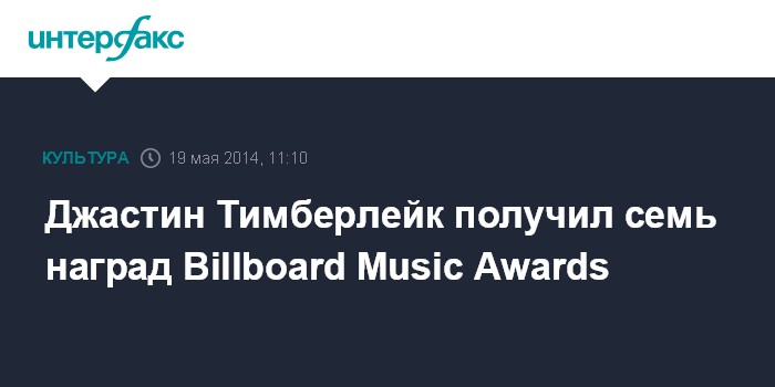 Москва. 19 мая. INTERFAX.RU - Джастин Тимберлейк получил семь наград премии Billboard Music Awards, сообщается на сайте музыкального издания. Церемония вручения прошла накануне в Лас-Вегасе в MGM Grand Garden Arena.