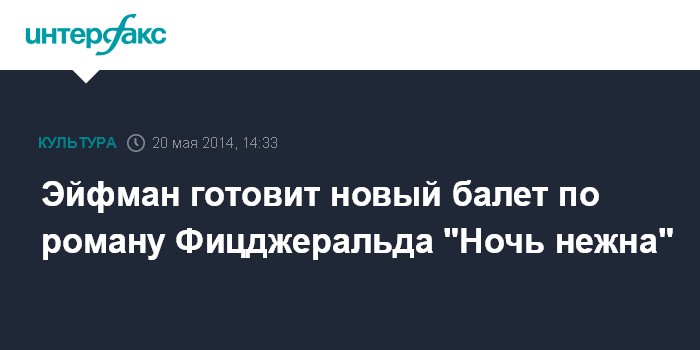 Москва. 20 мая. INTERFAX.RU - Хореограф Борис Эйфман готовит новый спектакль по роману Фрэнсиса Скотта Фицджеральда "Ночь нежна".