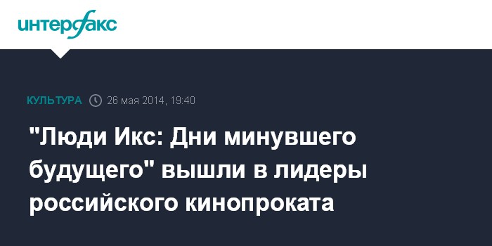 Москва. 26 мая. INTERFAX.RU - Лидером российского кинопроката за минувший уикенд (22-25 мая) стал американский фантастический боевик "Люди Икс: Дни минувшего будущего".