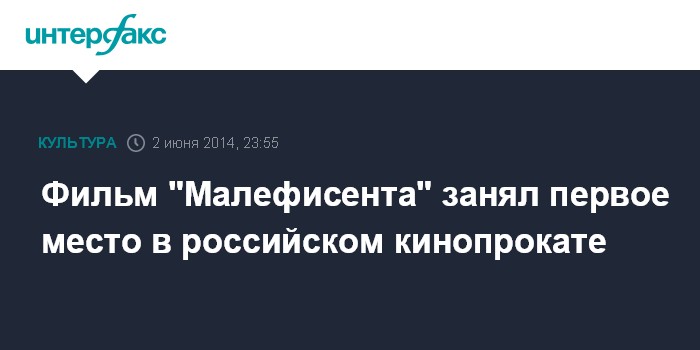 Москва. 2 июня. INTERFAX.RU - Лидером российского кинопроката за минувший киноуикенд (29 мая - 1 июня) стал американский фильм "Малефисента" (Maleficent).