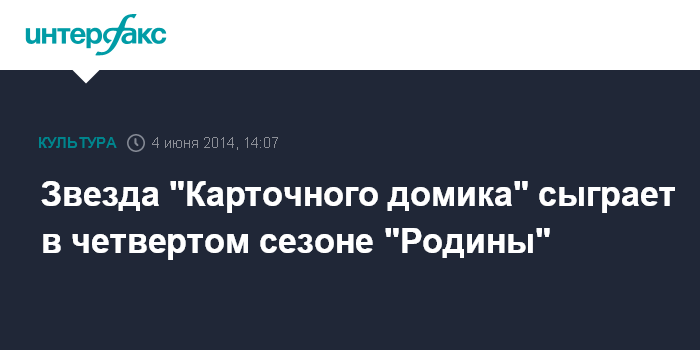 Москва. 4 июня. INTERFAX.RU - В четвертом сезоне сериала "Родина" (Homeland) появится актер, сыгравший ранее в сериале "Карточный домик" (House of Cards), сообщает The Guardian.