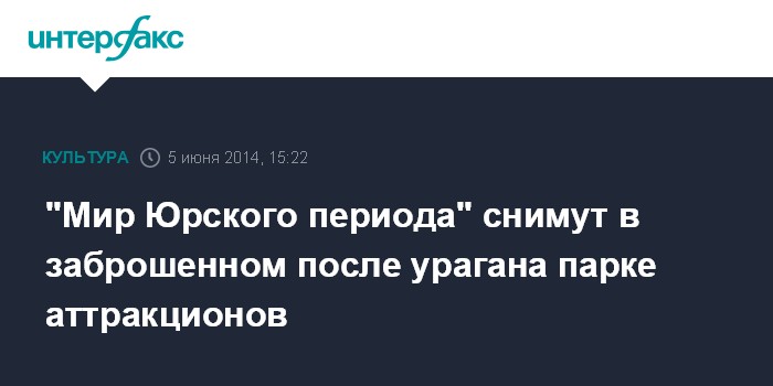 Москва. 5 июня. INTERFAX.RU - Часть съемок фильма "Мир Юрского периода" пройдет в парке аттракционов в Новом Орлеане, который был заброшен после урагана "Катрина", сообщает The Guadrian.