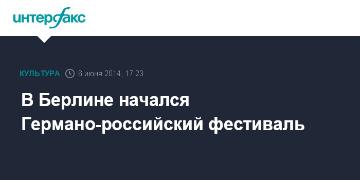 Москва. 6 июня. INTERFAX.RU - В Берлине стартовал VIII Германо-российский фестиваль, сообщили "Интерфаксу" в пресс-центре департамента внешнеэкономических и международных связей Москвы в пятницу. Он продлится до 8 июня.