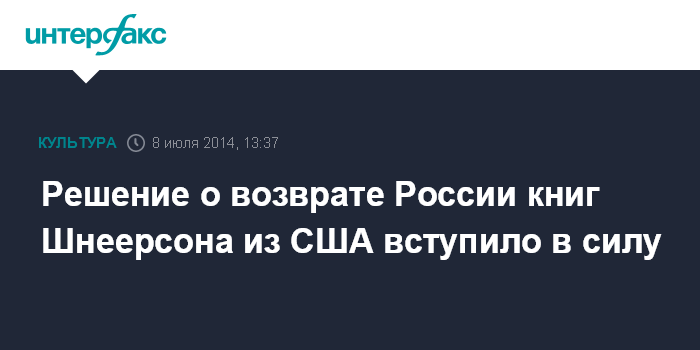 Москва. 8 июля. INTERFAX.RU - Решение суда, обязавшего библиотеку Конгресса США вернуть РФ книги Шнеерсона, вступило в законную силу, оно подлежит исполнению.
