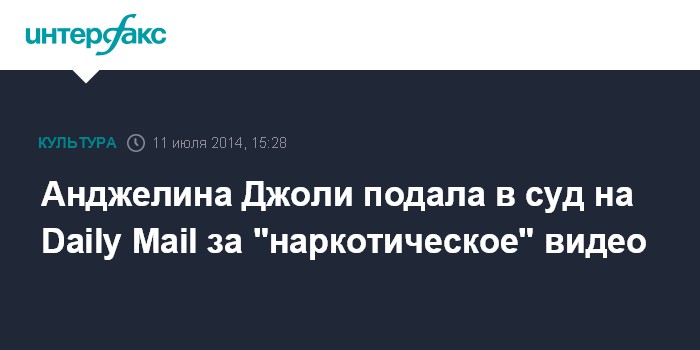 Москва. 11 июля. INTERFAX.RU - Голливудская актриса Анджелина Джоли подала в суд на британский таблоид Daily Mail за публикацию видео, на котором, как утверждается, она запечатлена под воздействием наркотиков, пишет The Times. Актриса расценила публикацию видеозаписи как вторжение в частную жизнь.