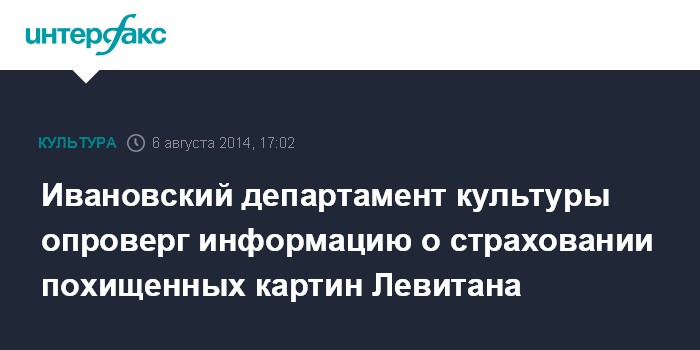 Ивановский департамент культуры опроверг информацию о страховании похищенных картин Левитана