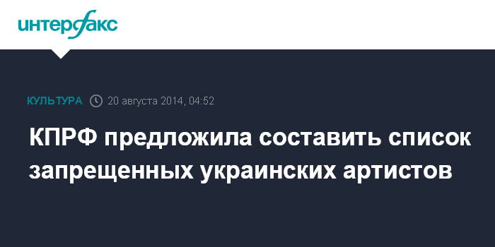 Москва. 20 августа. INTERFAX.RU - КПРФ разместила на партийном ресурсе "Народная инициатива" голосование с предложением составить черный список украинских музыкальных исполнителей, ротацию клипов которых предлагают запретить на российских телеканалах.
