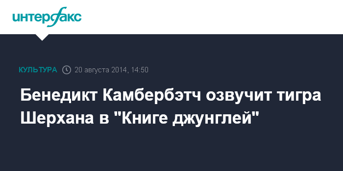 Москва. 20 августа. INTERFAX.RU - Британский актер Бенедикт Камбербэтч озвучит главного врага Маугли тигра Шерхана в готовящейся экранизации "Книги джунглей" Редьярда Киплинга, сообщает The Hollywood Reporter.