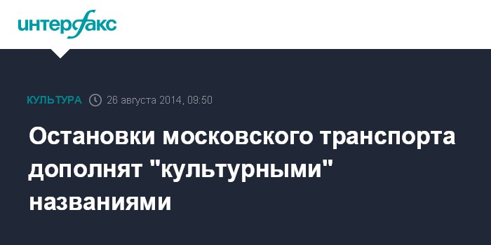 Москва. 26 августа. INTERFAX.RU - Названия остановок наземного транспорта в Москве предложили связать с ближайшими к ним культурными объектами, сообщают "Известия". По задумке авторов инициативы, это привлечет горожан и гостей столицы в музеи и другие культурные учреждения, о существовании которых они, возможно, даже не подозревают.