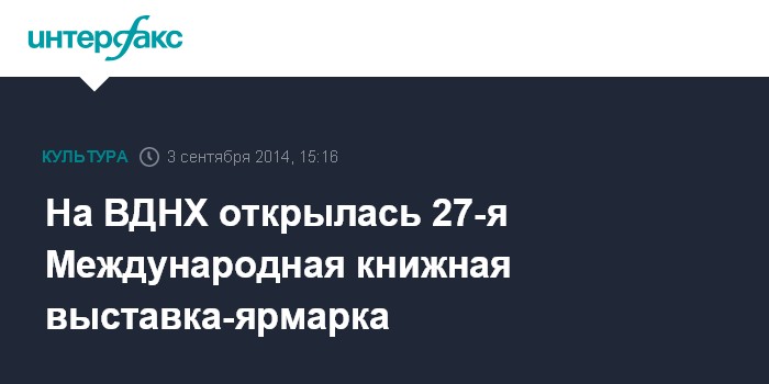 Москва. 3 сентября. INTERFAX.RU - На ВДНХ состоялось торжественное открытие 27-й Московской международной книжной выставки-ярмарки (ММКВЯ), сообщается на ее сайте.