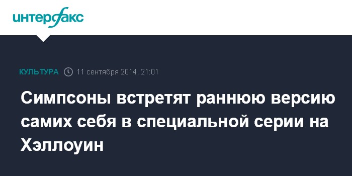 Москва. 11 сентября. INTERFAX.RU - Создатели мультсериала "Симпсоны" подготовили специальную серию на Хэллоуин, в которой герои мультфильма встретят раннюю версию самих себя, сообщает Entertainment Weekly.