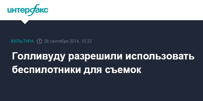 Москва. 26 сентября. INTERFAX.RU - Федеральное управление гражданской авиации США (Federal Aviation Administration - FAA) разрешило шести голливудским кино- и телекомпаниям использовать беспилотники для съемок на территории США, сообщает The Hollywood Reporter.