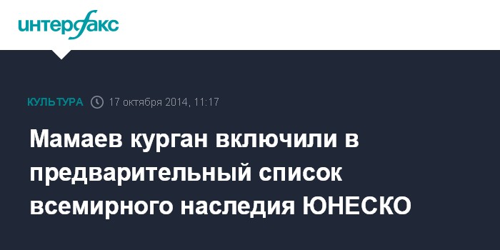 "Мемориальный комплекс вошел в предварительный список всемирного наследия ЮНЕСКО сразу по трем культурным критериям. Эксперты ЮНЕСКО считают, что архитектурный комплекс на Мамаевом кургане представляет собой шедевр творческого гения человека, является выдающимся примером архитектурного ансамбля, иллюстрирующим значительный этап в истории человечества, а также связан с событиями, имеющими универсальную значимость", - сказано в пресс-релизе.