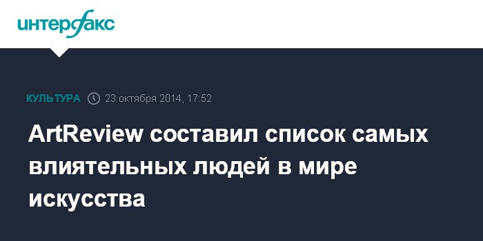 Москва. 23 октября. INTERFAX.RU - Международный журнал ArtReview опубликовал ежегодный список ста самых влиятельных людей в мире искусства.