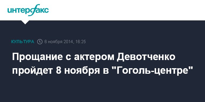 Прощание с актером Девотченко пройдет 8 ноября в "Гоголь-центре"