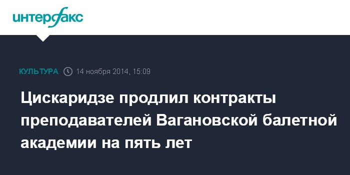 Москва. 14 ноября. INTERFAX.RU - Исполняющий обязанности ректора Академии русского балета (АРБ) им. Вагановой Николай Цискаридзе продлил контракты со всем коллективом учреждения.