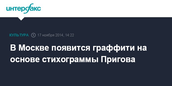 Москва. 17 ноября. INTERFAX.RU - В московском микрорайоне Беляево к 18 ноября завершится создание масштабного граффити на основе стихограммы одного из основоположников московского концептуализма, художника, поэта и скульптора Дмитрия Пригова, сообщается на сайте префектуры ЮЗАО.