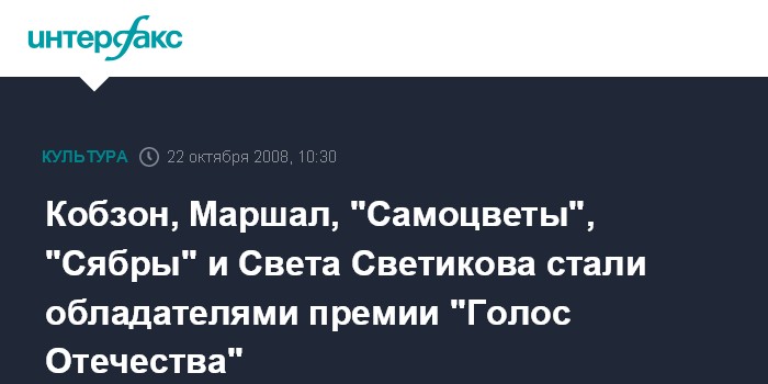 Кобзон, Маршал, "Самоцветы", "Сябры" и Света Светикова стали обладателями премии "Голос Отечества"